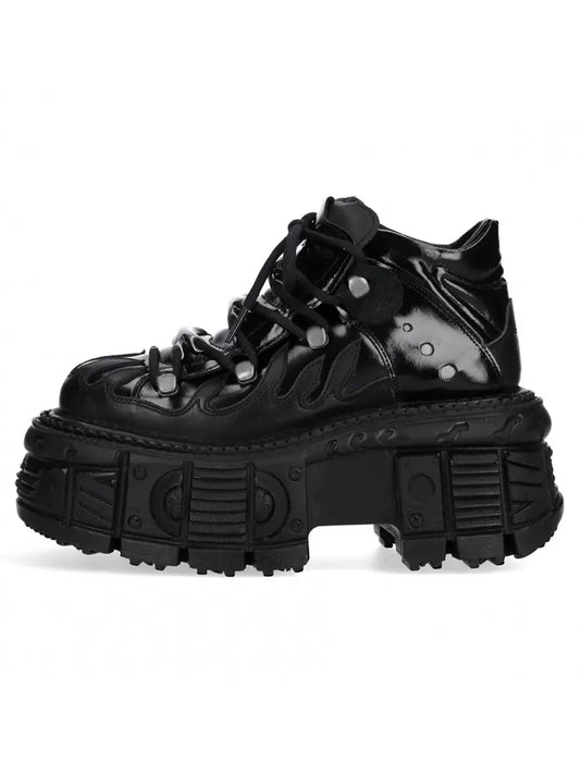 Punk Retro Platform Shoes Lace-Up Dark Leather
