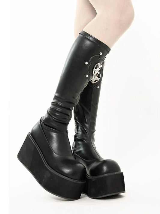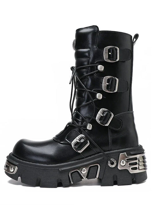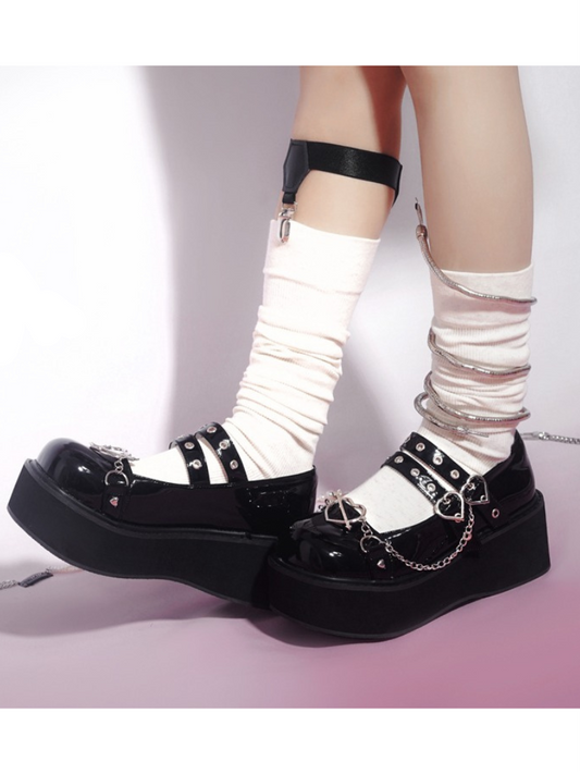 Metal Leather High Platform Plain with Punk Chain Shoes Dark Style Top