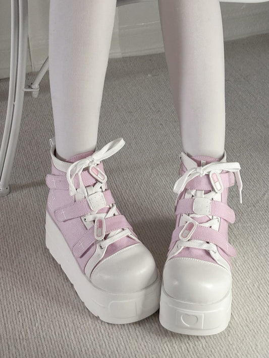 Yami Kawaii Pink Round Toe Platform Sneakers
