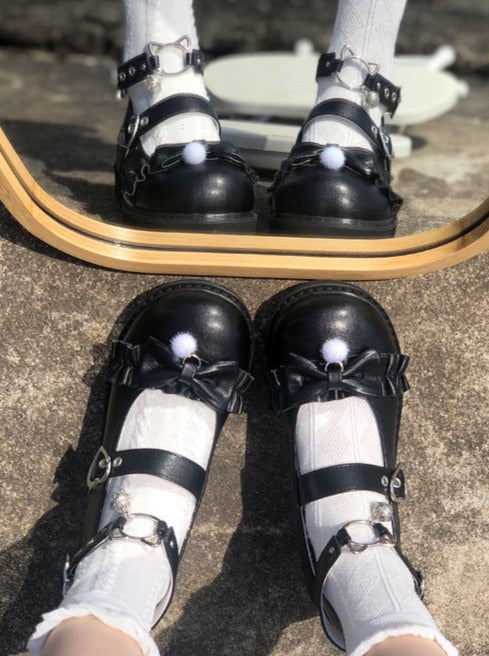 Black Round Toe Kitty Angel Heart Buckle Platform Lolita Shoes