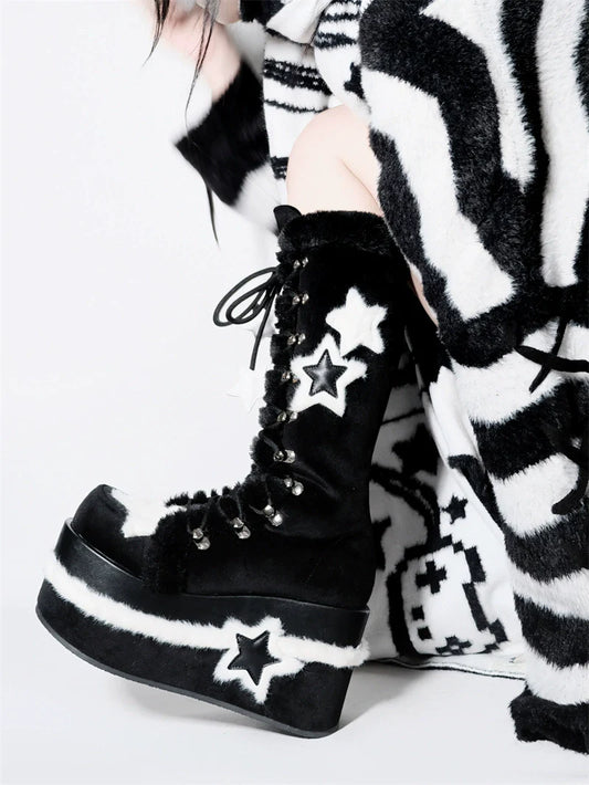 Y2K Subculture Boots Platform Mid Velvet Star