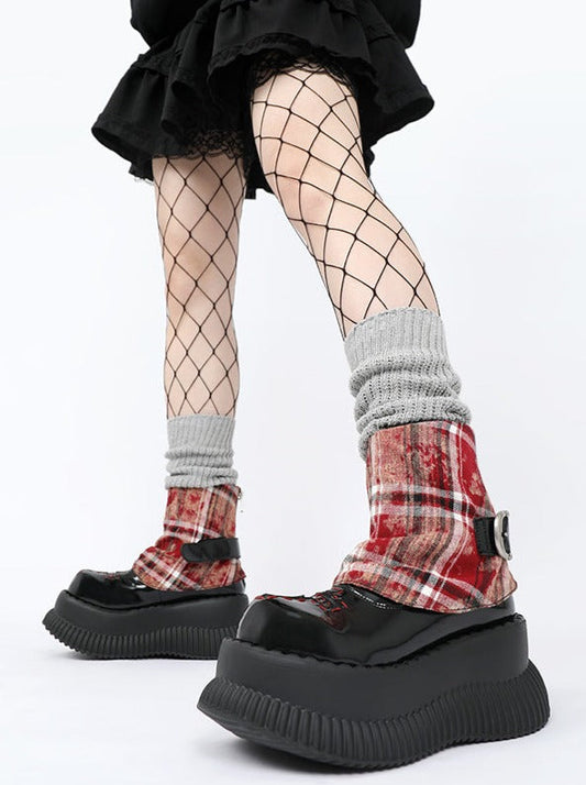 Bunny Shoes Dark Red Check Red All Platform