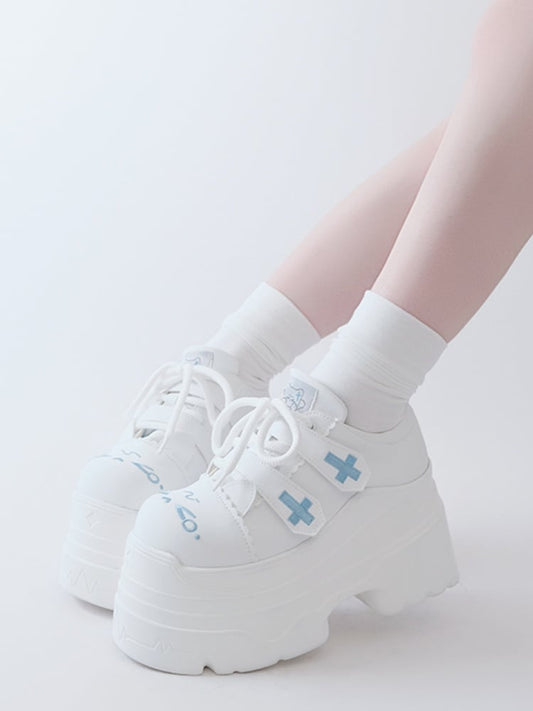 Yami Kawaii Matte White Cross Velcro Strap Kitty Ears Platform Shoes