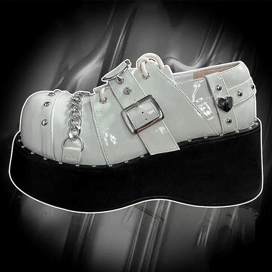 Chain Platform Shoes with Polished White Punk Studded Accents Details