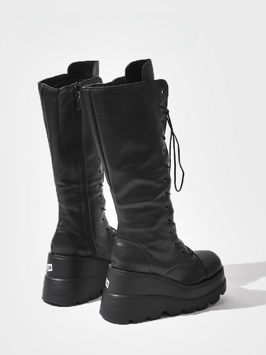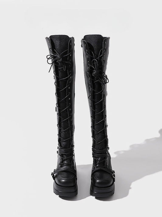 Thigh-high Black Lace-up Platform Closure Boots - Punk