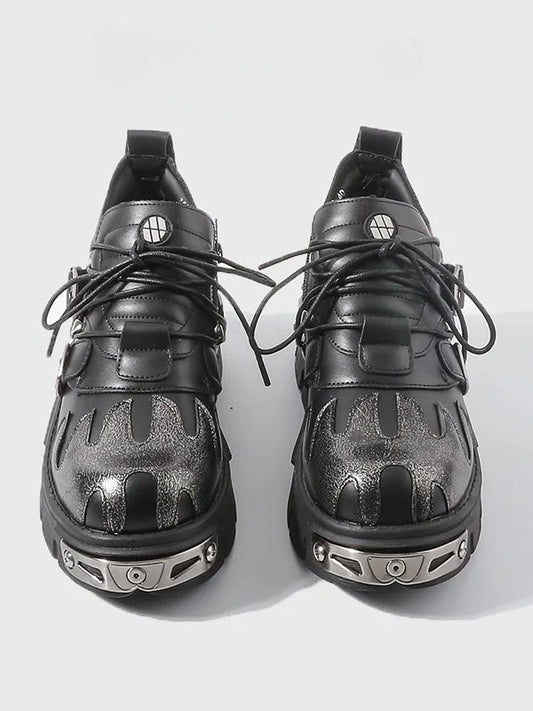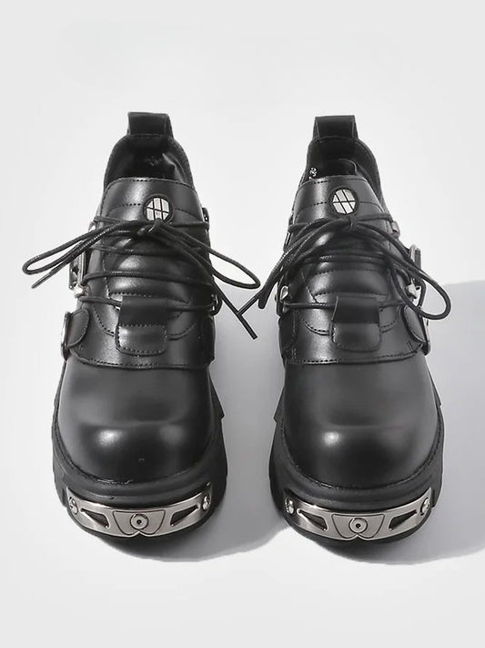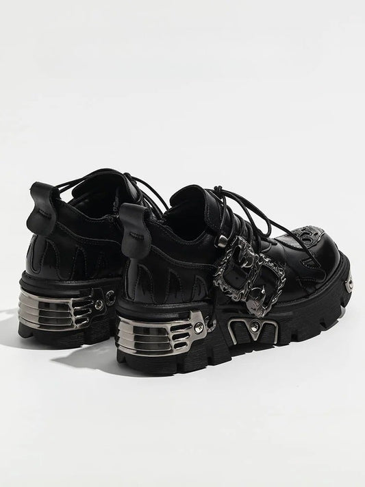 Sole Flame with Platform Triple Metal Plates Punk Closure - Detailing Shoes System Black