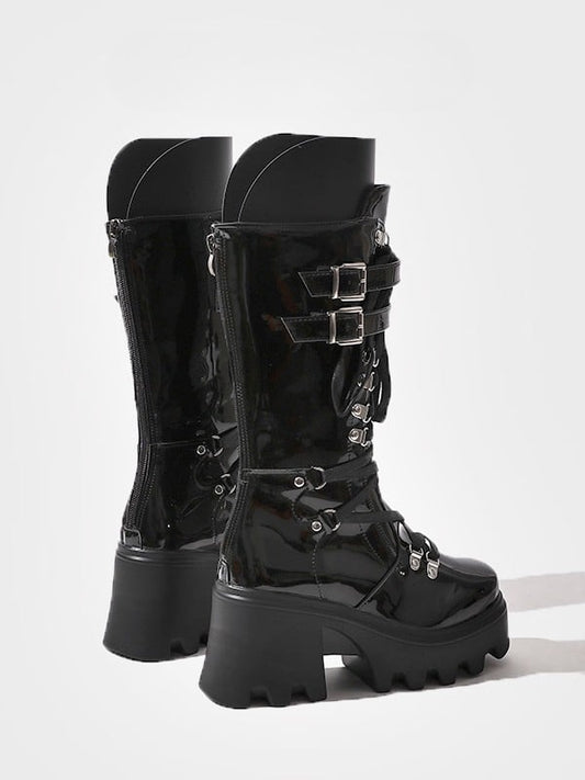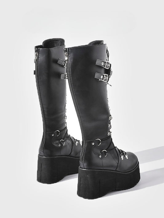 Knee-High System - Platform in Boots with Black Buckle Fastening Triple Style Punk