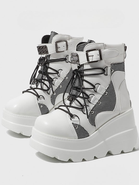 System - Shoes Platform White with Lace-Up Punk Triple Fastening