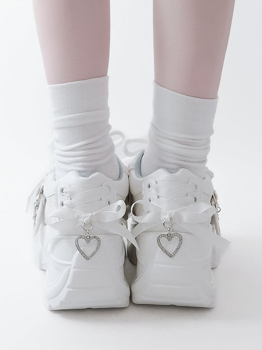 Lacing Crystal Kei Heart Back Jirai Shoes - Platform White