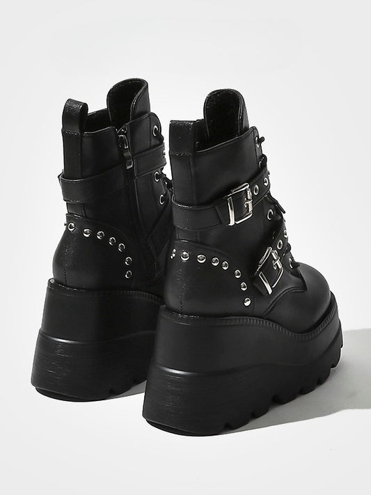 Triple Style Platform - Studs with Black Details Punk System Boots Fastening in