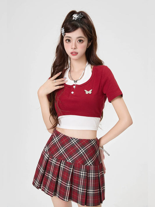Girl American Hot Style Retro Tops Slim Style