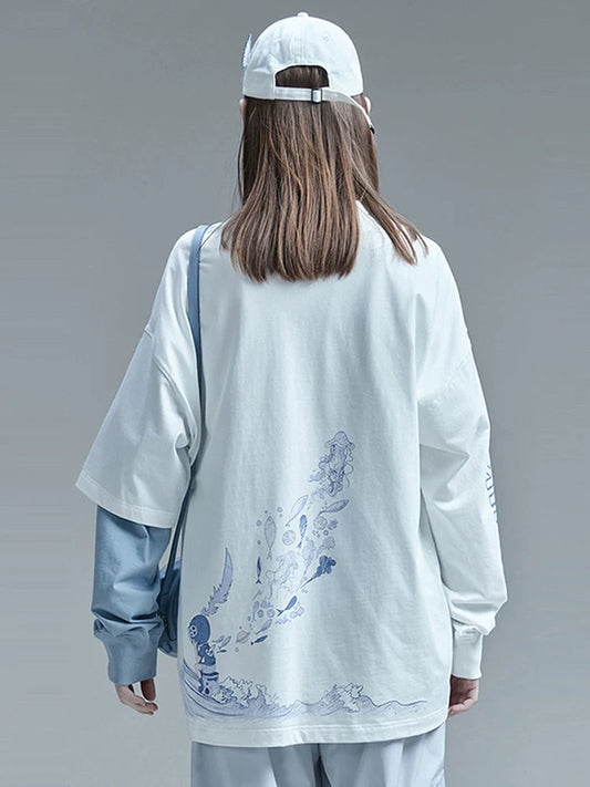 Printed Tops Neck Loose Round Dark