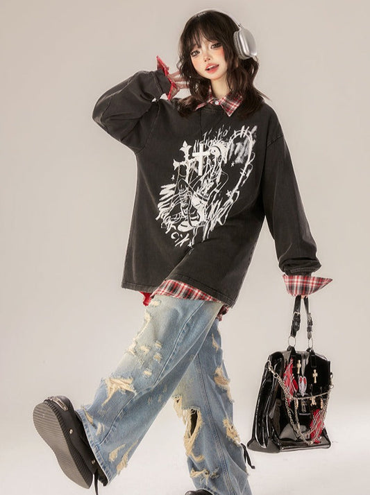 Street Dark Casual Mode Tops Loose