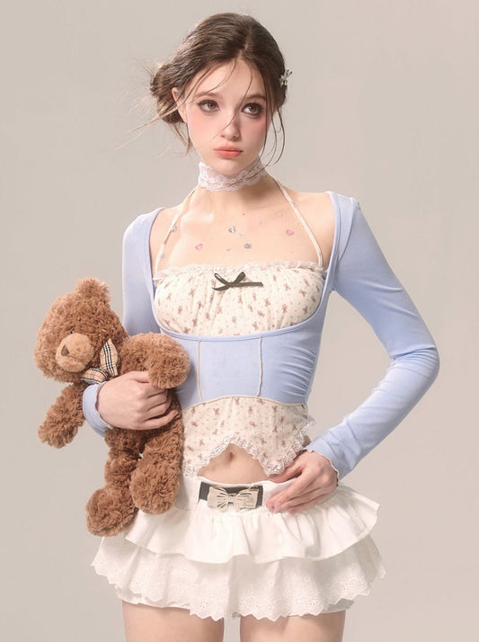 Blue Tops Two Sister Faux Waist Piece
