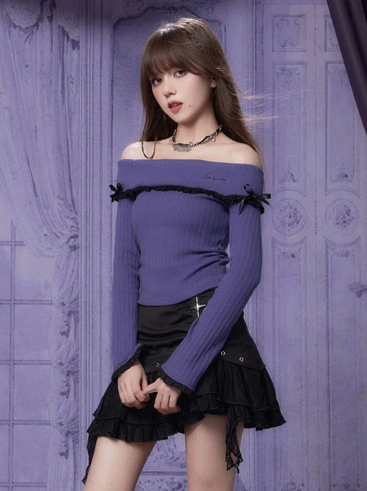 Off-shoulder One Point Nitt Tops