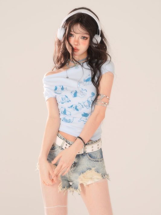 Tops Short Cute Dog Slim