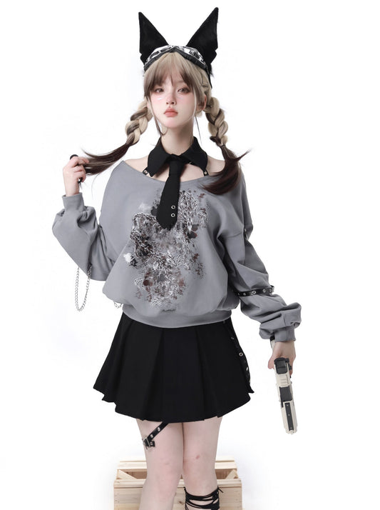 Sleeppress Dragon Tops + Pleated Skirt