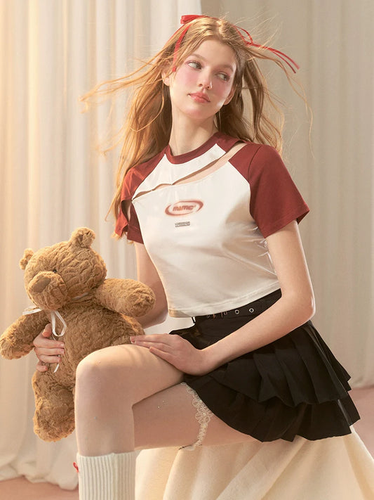 Asymmetrical College Tops Retro Casual
