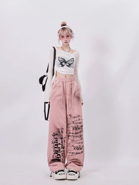 Y2K Black Letters Fake Two-piece Design Cropped Top