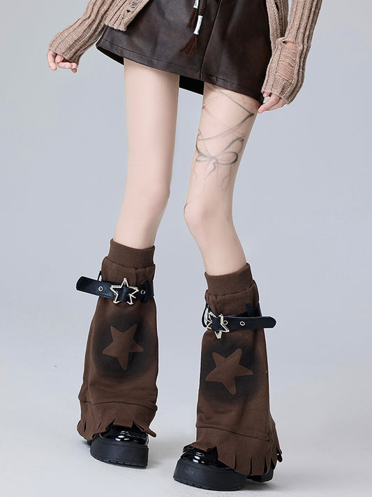 Brown Y2K Star-shaped Buckle Strap Leg Warmers