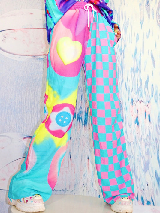 Star Print Pattern Y2K Heart Colorful Pants And Wide-leg Checked Cut