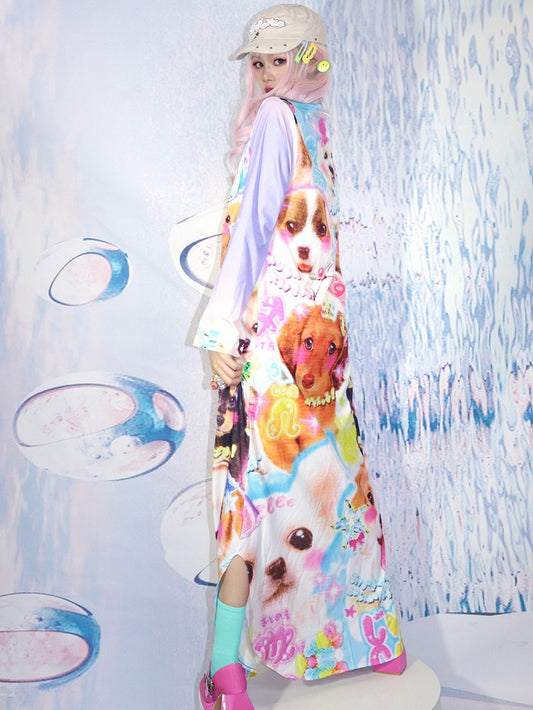 Puppy Coloeful Print Dress Shirt Y2K