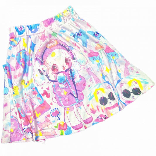 A-line Cartoon Y2K Print Skirt White