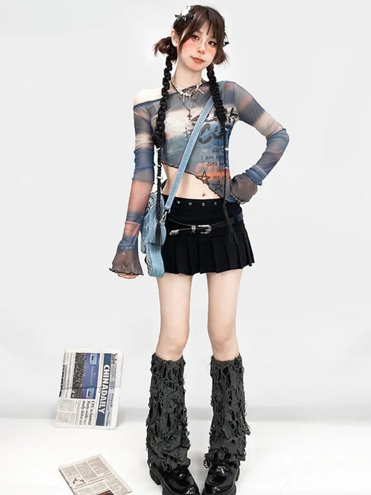 Punk Leg Warmers Y2K Cross Applique