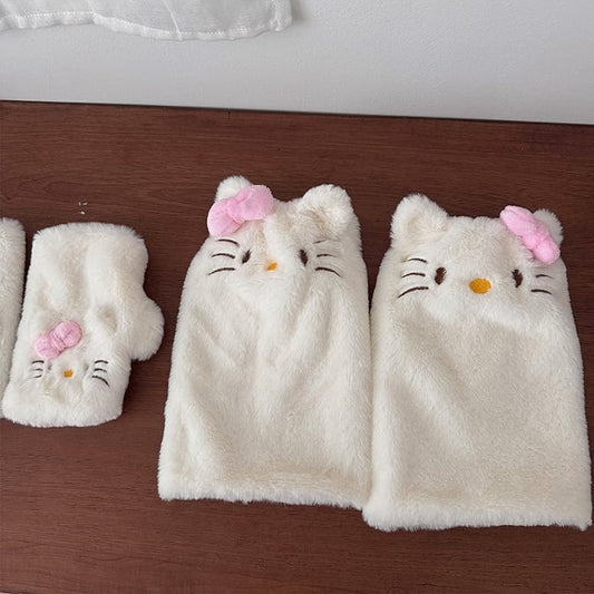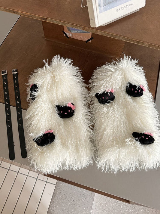 White/Pink/Coffee Stud Shaggy Leg Warmers With Kitty Plushie