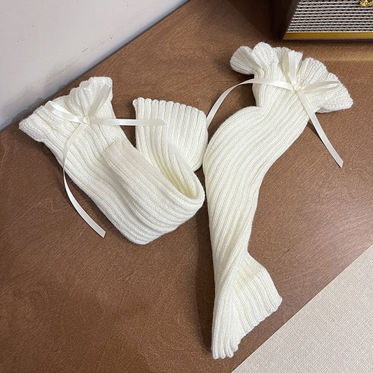Milk White/Black/Apricot/Camel/Pink/Green Sweet Bowknot Leg Warmers