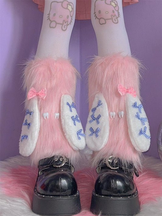 Pink/Blue Rabbit Ears Design Y2K Shaggy Leg Warmers