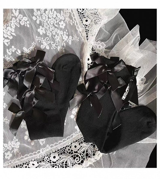 White/Black Bows Ribbed Trim Lolita Under Knee Stockings