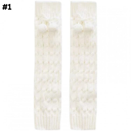 White/Beige/Light Grey/Black Knitted Leg Warmers With Pompons