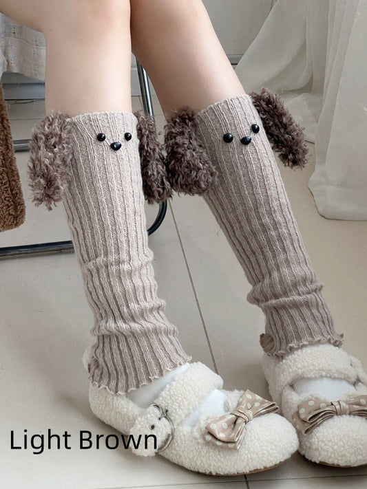 Cute White/Khaki/Grey/Brown Y2K Puppy-shaped Leg Warmers