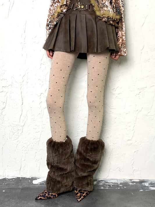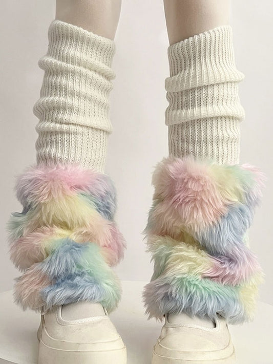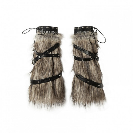Punk White&Brown Y2K Shaggy Leg Warmers