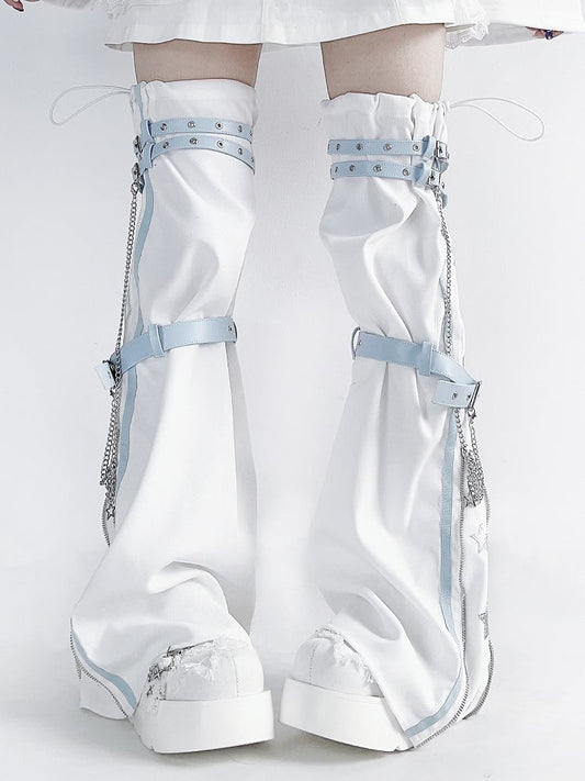Kaiwai Star Appliques White and Light Blue Over-knee Leg Warmers