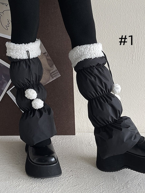 Cute White/Black/Brown Y2K Knit Leg Warmers With Pompons