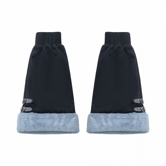 Blue&Black Plush Trim Leg Warmers with Buckle