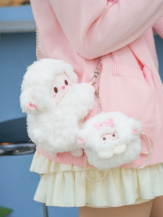 Pink Lamb Plush Backpack Crossbody Bag Small/Middle/Large Size
