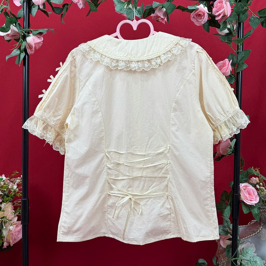 Shirt White Fashion Short Neckline Sleeves Lace-up Lolita Ouji