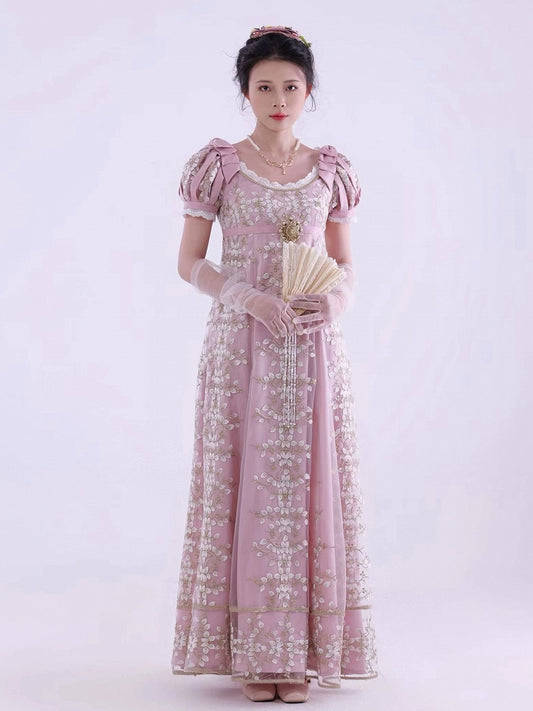 Pink Empire Waist Regency Elegant Lolita Maxi Dress Ankle Length Version
