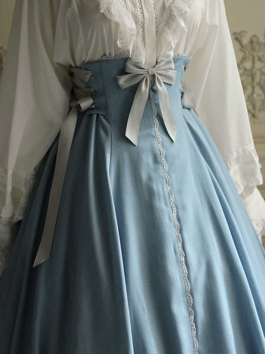 Dusty Blue Boned High Waist Long Version Autumn Daily Lolita Skirt
