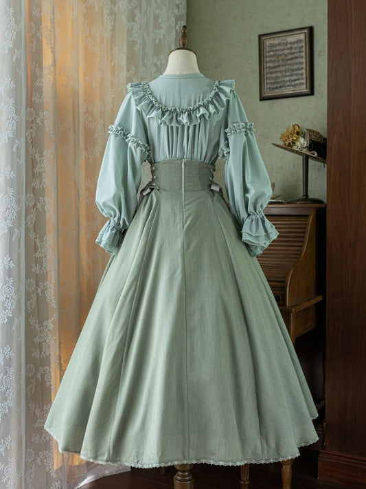 Dusty Green Boned High Waist Long Version Autumn Daily Lolita Skirt