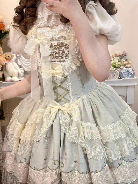 Green / Beige Boned Waist Teddy Sweet Lolita Jumper Skirt