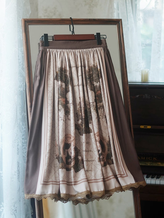 Cottagecore Patchwork Print Sweet Lolita Skirt with Detachable Straps Long Version