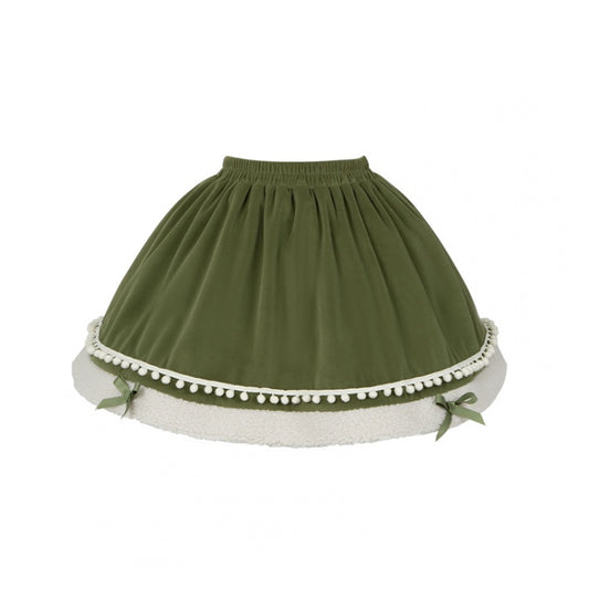 Green Elastic Waist Fleece Hemline Winter Lolita Skirt