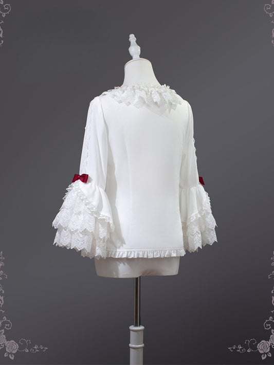 White Lace Collar Layered Lace Bell Sleeves Lolita Blouse