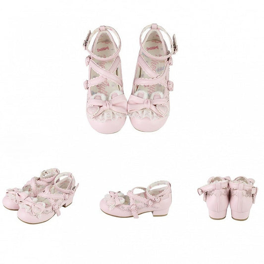 Lace Bow Details Lolita Sweet Bead Pink and KC White