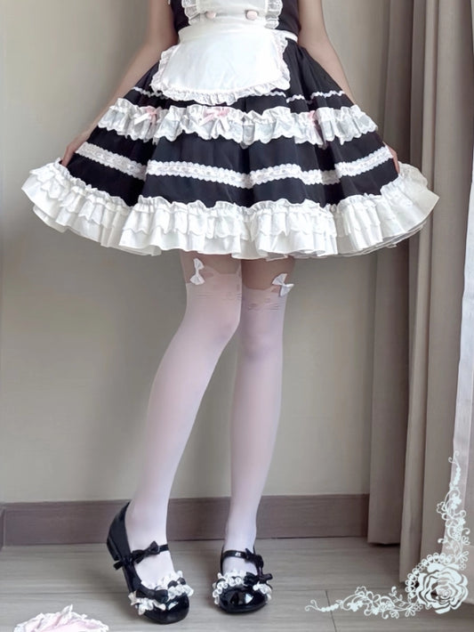 Gothic Necklace Black Top Han Lolita Skirt Bonnet Long Apron Horse-face - Set +