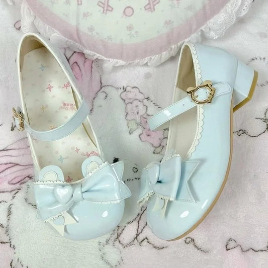 Mary with Lolita PU Top Sweet Bow Ear Pink Low-heel Teddy in Janes Closure Bear